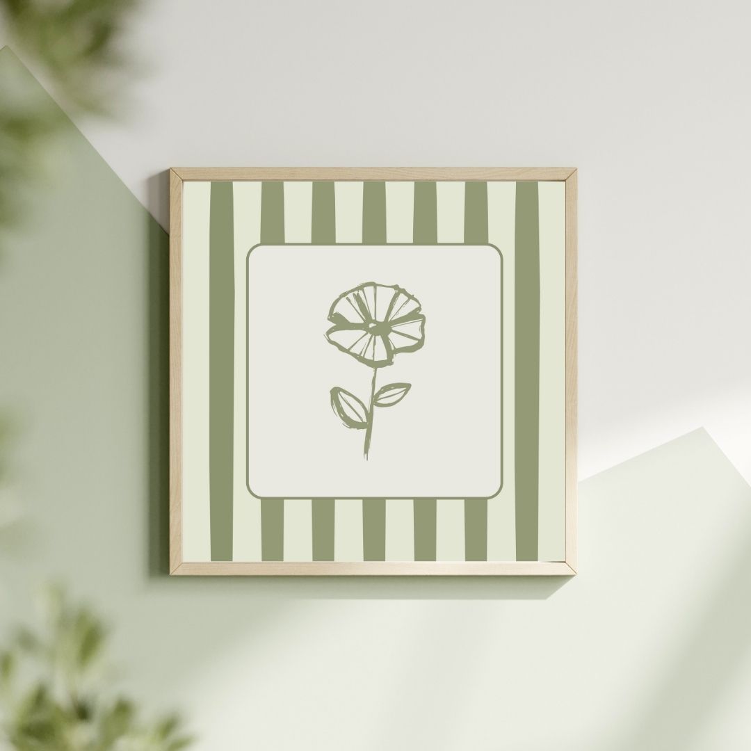₺200,00 – ₺400,00Fiyat aralığı: ₺200,00 - ₺400,00Sage Green Floral Stripe Poster – Minimal Çiçek İllüstrasyonu | Kare Duvar Dekoru